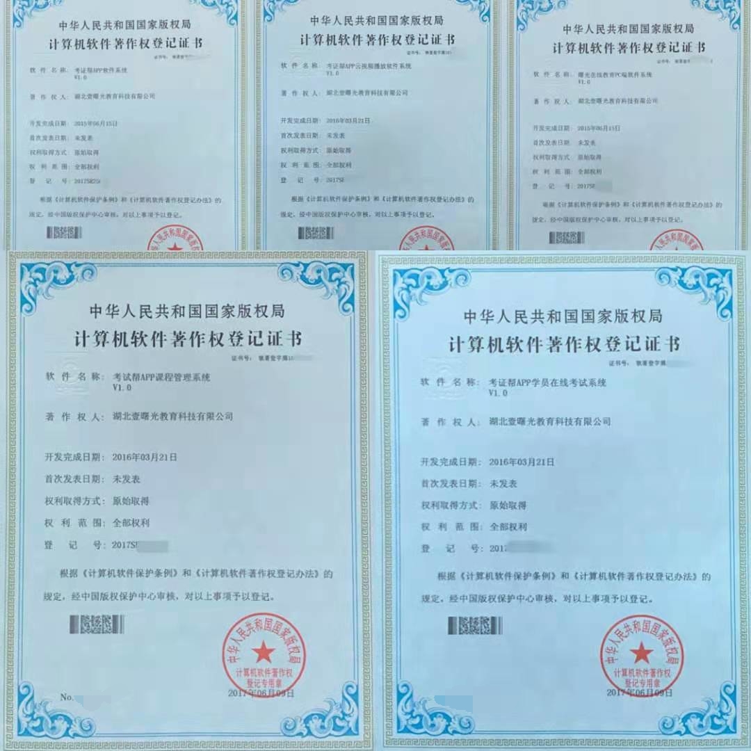 計算機軟件著作權是指軟件的開發者或者其他權利人依據有關著作權法律的規定,對于軟件作品所享有的各項專有權利。軟件經過登記后,軟件著作權人享有發表權、開發者身份權、使用權、使用許可權和獲得報酬權。獨立的知識產權是對曙光在線教育自主科研能力的實力證明。